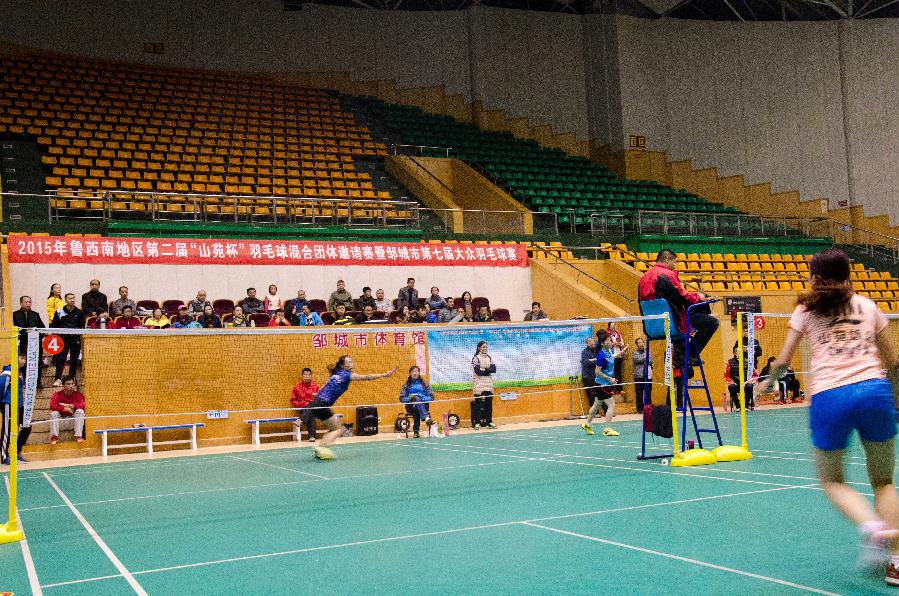 10月31日,2015年鲁西南地区第二届 “山苑杯”羽毛球混合团体邀请赛暨邹城市第七届大众羽毛球赛在该市体育公园体育馆举行。本次比赛由邹城市体育公园管理处主办,共有来自台儿庄、枣庄、济宁、滕州、曲阜、兖州、邹城、兖矿集团、邹县电厂等鲁西南地区的15支代表队300余名运动员参赛,历时两天200多个场次比赛的激烈角逐。这已是该市第四次举办鲁西南地区的邀请赛,旨在为鲁西南地区羽毛球业余爱好者提供一个交流球艺的平台,推动鲁西南地区羽毛球运动的开展。