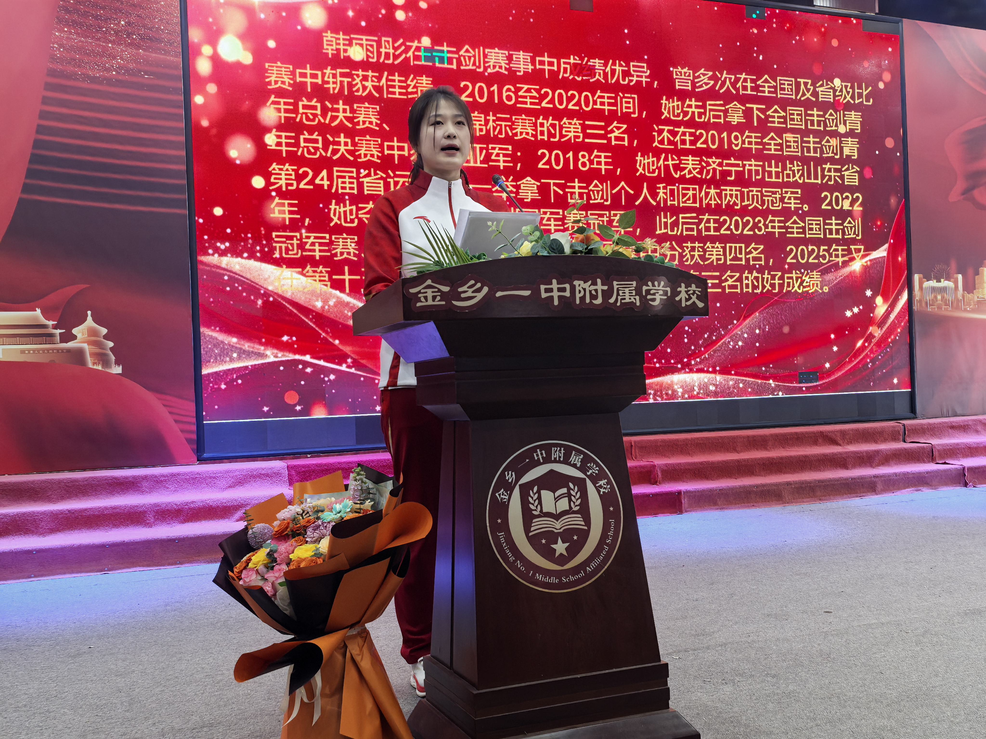 | 全运健儿走进校园 体育精神激励成长——第十五届全运会击剑项目团体季军韩雨彤走进金乡一中附属学校 |
