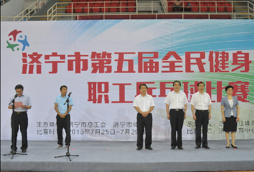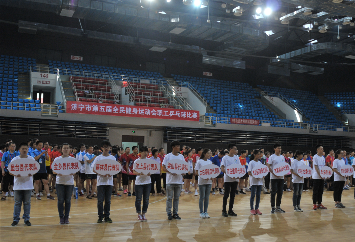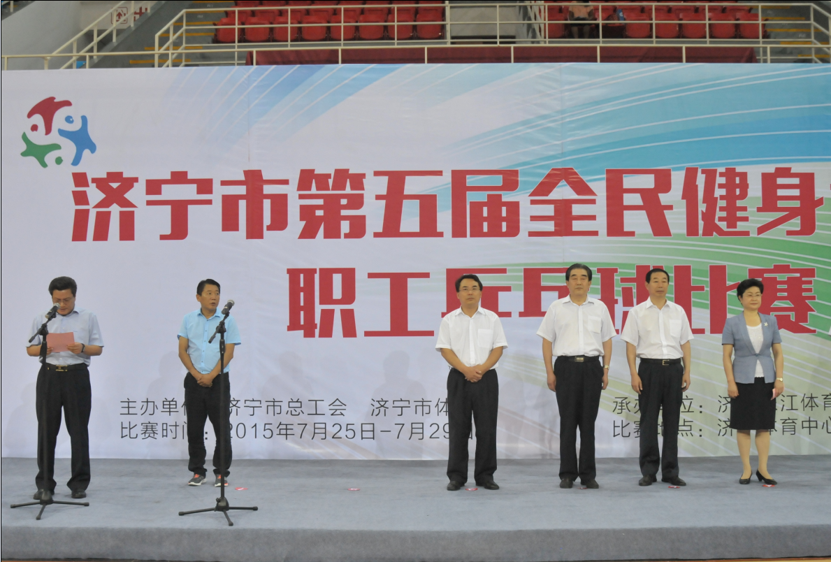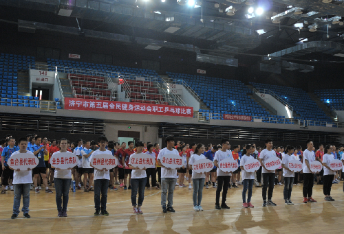 7月26日上午,济宁市第五届全民健身运动会职工乒乓球大赛在济宁文体中心综合馆隆重开幕,济宁市人大常委副主任、市总工会主席罗心光,济宁市政府副市长、太白湖新区党工委书记石爱作等相关领导出席开幕式。市政府副秘书长徐兴华,市总工会党组书记、常务副主席岳秀银出席开幕式;市体育局局长董学琛主持开幕式。