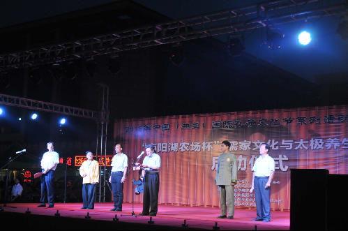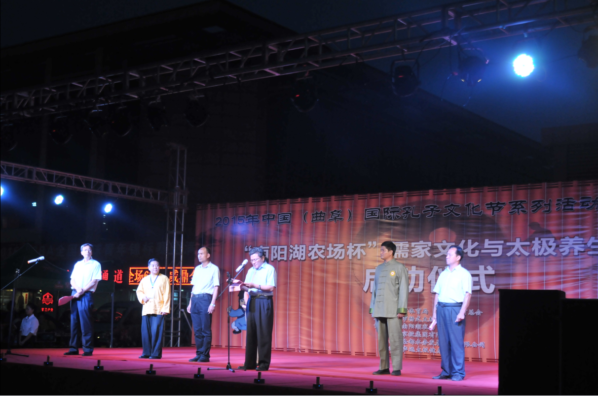 8月16日晚7时,2015年孔子文化节系列活动-“南阳湖农场杯”儒家文化与太极养生序列启动仪在全民健身广场顺利举行,济宁市体育局党组成员、市体育总会主任张洪年主持启动仪式,济宁市体育局局长董学琛做重要讲话。