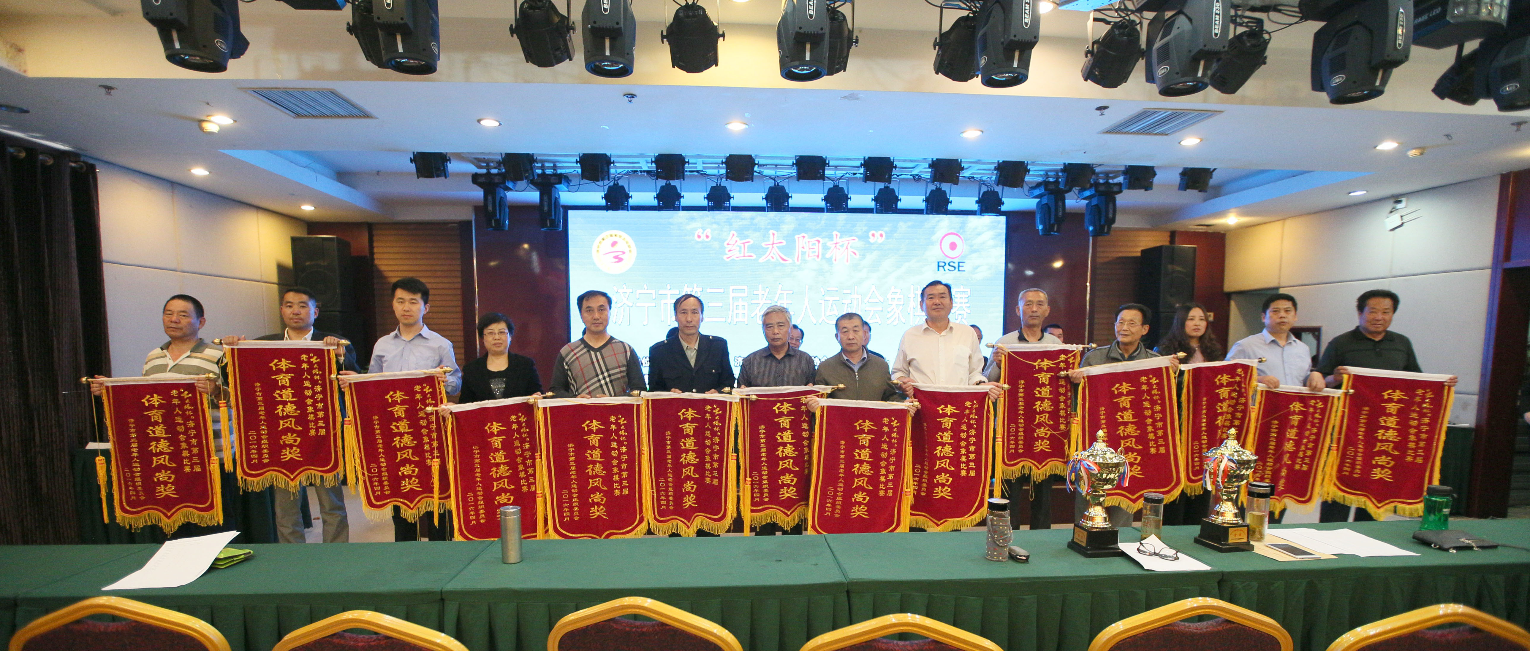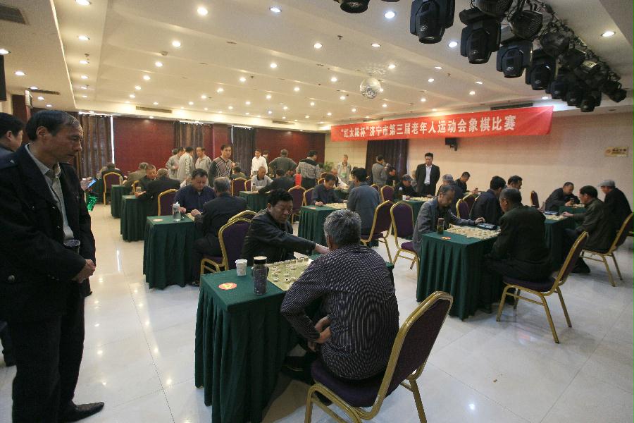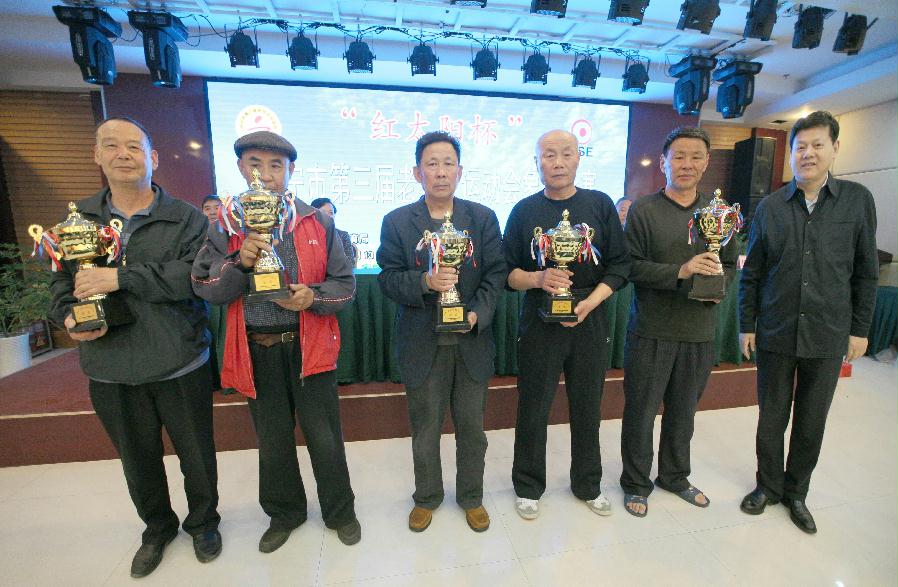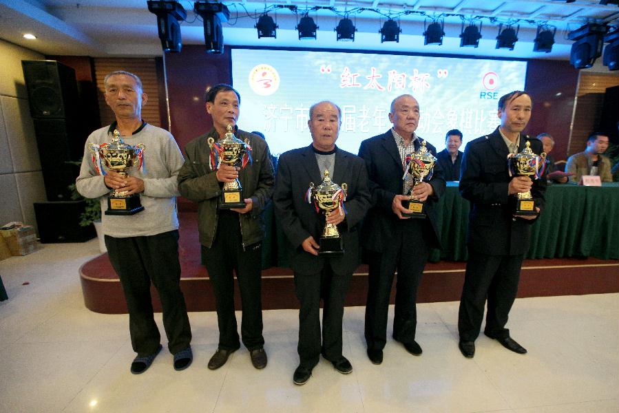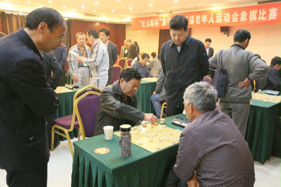 4月14日下午,由济宁市体育局、济宁市老年人体育协会主办,金乡县人民政府承办的“红太阳杯”济宁市第三届老年人运动会象棋比赛在铂金大酒店圆满落幕。来自各县市区、济宁经济开发区、市公安局、鲁宁监狱的14支代表队、42名优秀选手参加了对弈。济宁市老年人体育协会副主席郝进、副秘书长张昭贤、办公室主任赵相宏,金乡县副县长杨美兰,金乡县老年人体育协会主席程秀军出席颁奖仪式,为获奖代表队颁奖。