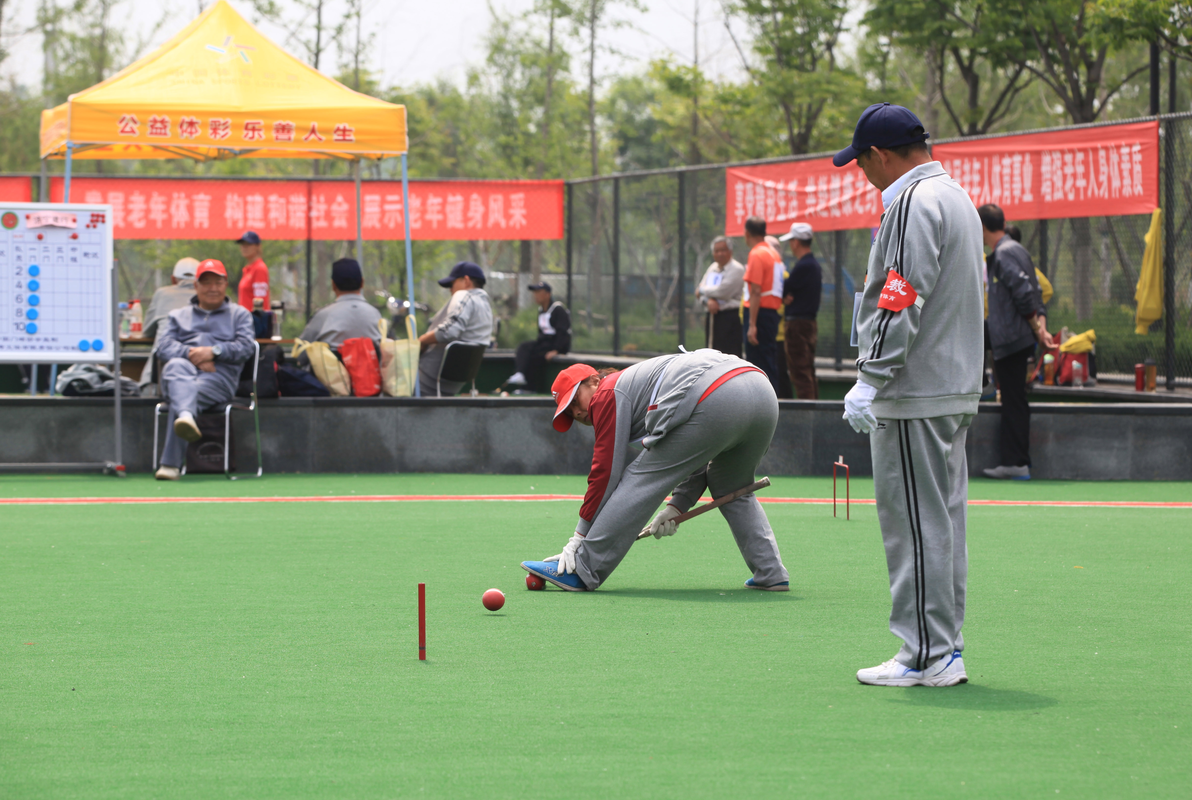 本次比赛分两个阶段进行,第一阶段分组循环,第二阶段淘汰附加赛,根据比赛成绩分别给予金、银、铜奖的奖励。由于是四年一届的老年人运动会,各参赛单位高度重视,均派出了最强阵容,竞争异常激烈。赛场上,参赛选手个个精神焕发,手握重槌,气定神闲,挥杆对垒沉着冷静,弯腰击球也显得身手矫健,击球力度和角度都控制得非常精准,毫不逊色于年轻人,充分展现了“夕阳红”的活力。特别是在冠亚军决赛中,比赛只剩5分钟时,场上的比赛真正进入白热化状态,选手的每一次挥杆都经过深思熟虑,一个稍微的变化就要及时调整策略,场外观众也被这氛围感染,睁大双眼看着选手们的每次击球。“好球、太漂亮了!”“哎呀!打重了……”球场内人声鼎沸,赛场内外呈现出一派其乐融融的热闹场景。赛场下,互致问候,谈笑风生,场面欢快,倍感轻松,说是比赛,成了一场欢乐大聚会。