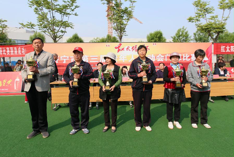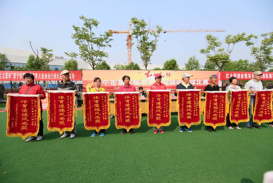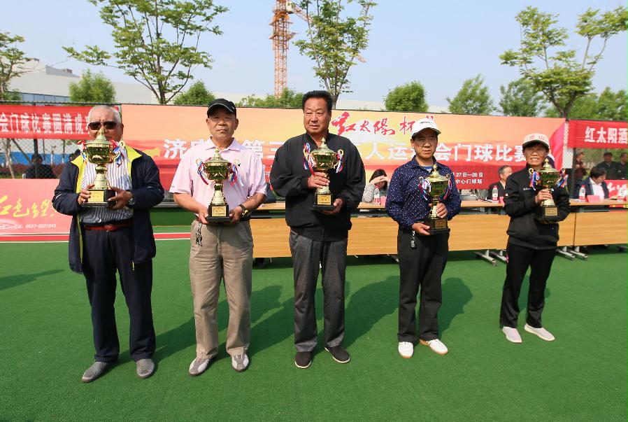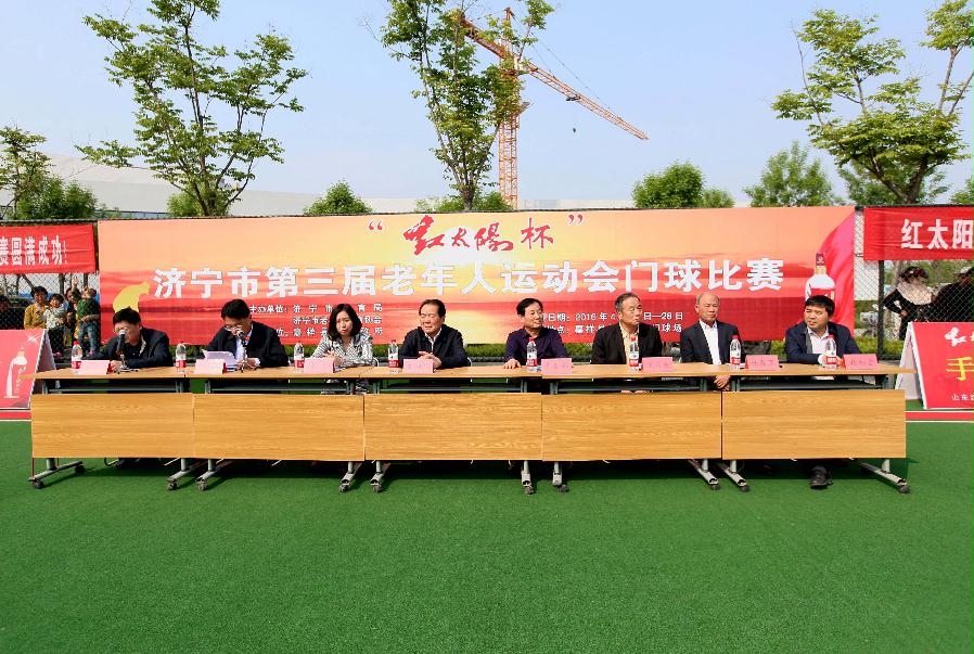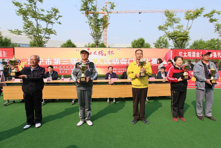 4月27日至28日,“红太阳杯”济宁市第三届老年人运动会门球比赛在嘉祥县体育中心新建人造草坪门球场举行,来自全市16支代表队130余名老年门球爱好者参加角逐。济宁市老年体协主席王润廷、副秘书长李春兴,嘉祥县委副书记李君、副县长吕心愿,市老年体协副秘书长孙锡亮、办公室主任赵相宏,嘉祥县老年体协主席王崇新,山东红太阳酒业有限公司董事长任春玉出席闭幕式,为获奖代表队颁奖。