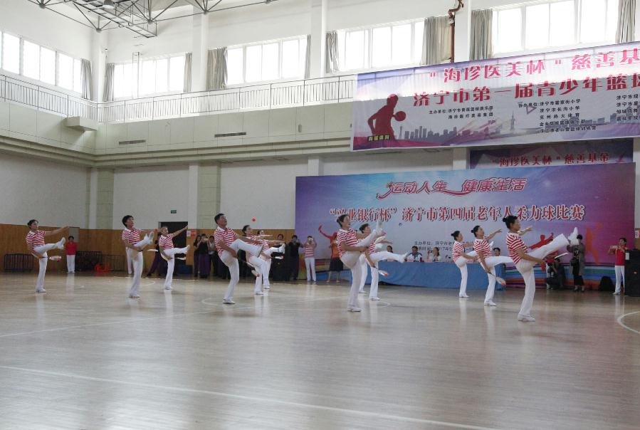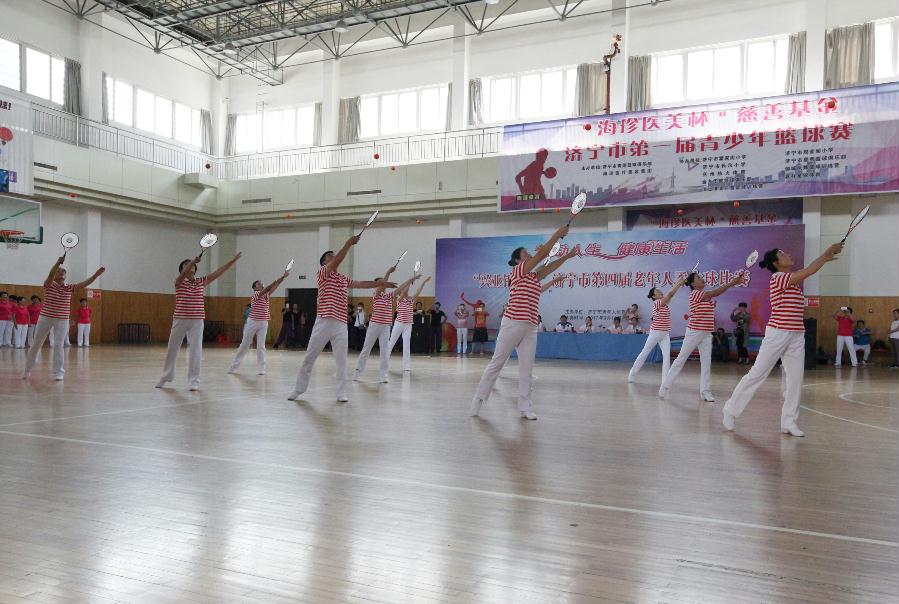 9月13日,济宁市第四届老年人柔力球比赛在济宁体育馆副馆举行。来自全市5支代表队70余名运动员、教练员参加。