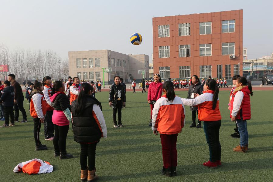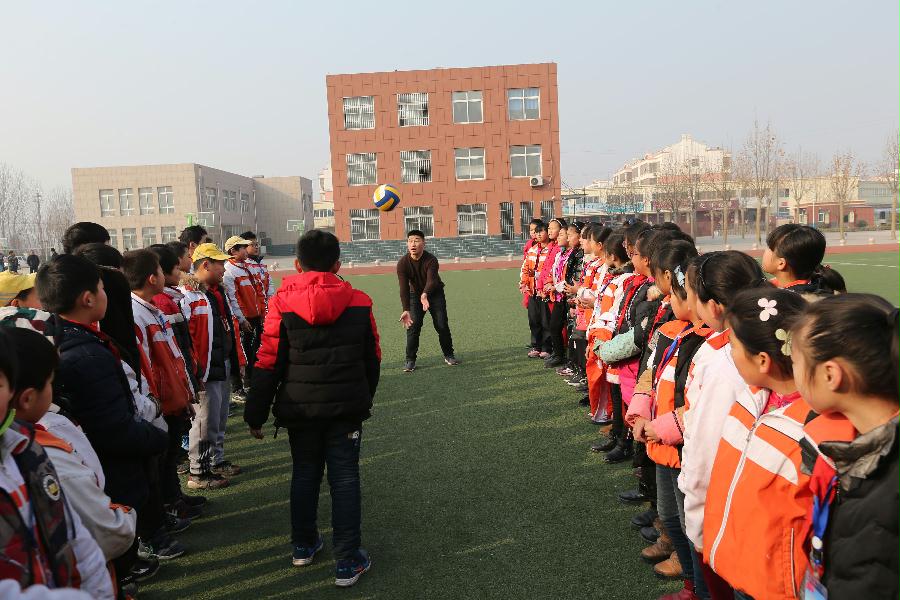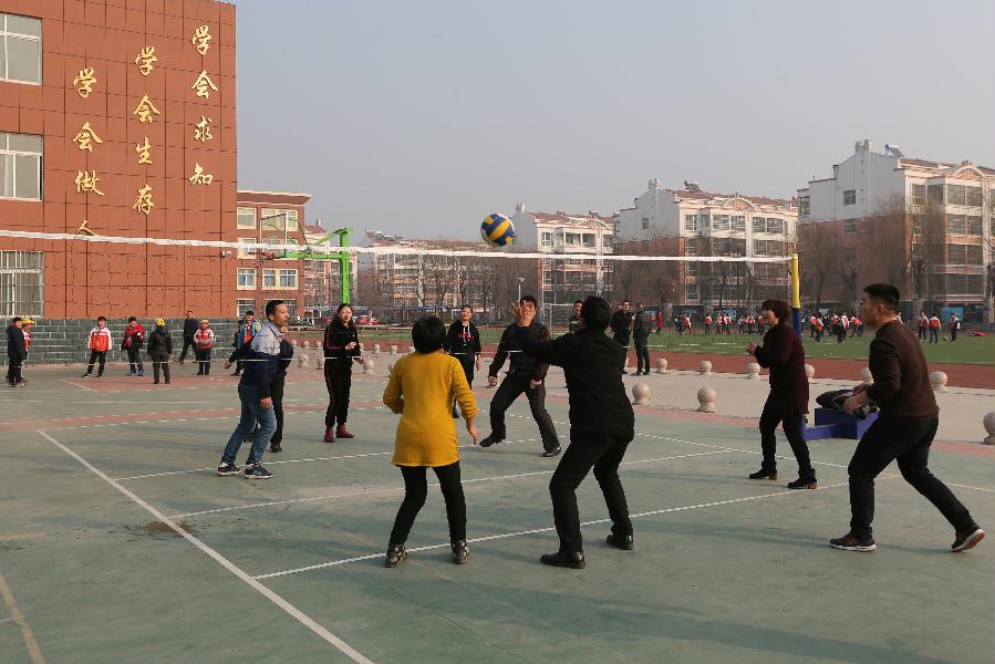 气排球与竞技排球相比, 手感好、重量轻、气压低、冲击力小,使青少年在主观上就容易产生兴趣。 “县教育局、体育局联合成立了气排球工作委员会,在全县中小学开展气排球项目的教学,并把气排球作为学生体育课的主要运动项目。”县体育局局长刘伟告诉记者说。在大张楼镇中心小学,记者见到了这样一处场景:气排球场上,20 多位教职工在拼命扣杀;田径场上,体育老师们在开展气排球教学。 小朋友们时而欢声笑语,时而认真学习,他们围成几个圆圈互相垫球,打得有模有样,脸上不时露出天真的笑容。 六年级学生孙京泽深有体会地说:“通过打气排球,我感觉自己身体健康了,学习效率也提高了,学习成绩不但没有落后,而且还提高了很多,爸爸妈妈也很支持我课余时间多参加体育锻炼,我们班好多同学放学后都去操场互相垫球玩。”