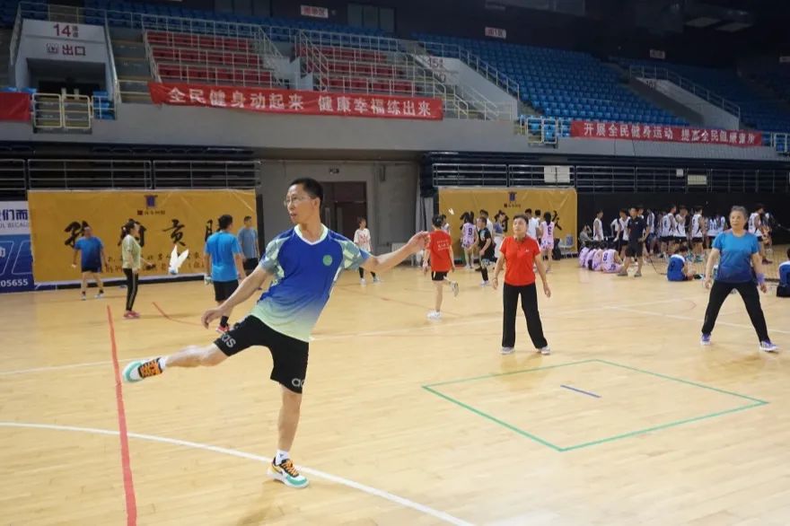 济宁市第十一届全民健身运动会花式毽球比赛在济宁体育中心综合馆开赛,来自济宁各县市区300余名毽球运动员参赛。