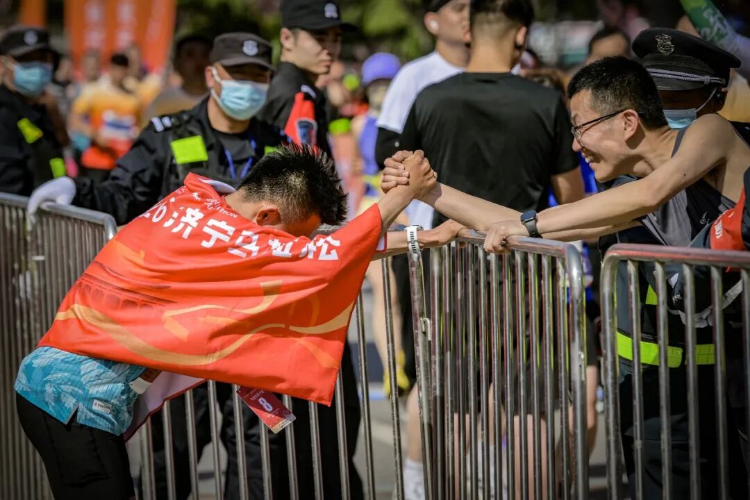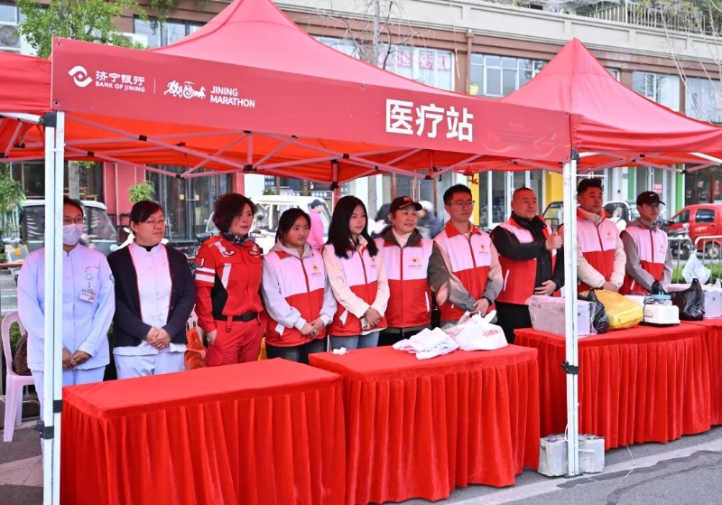 医疗站精准护航跑者安全 对济宁而言,这场赛事早已超越体育范畴,成为倡导全民健身、传递城市精神的载体和助推城市发展的引擎,更成了全市人民的“心头大事”。从产业园区到老街巷弄,从文化场馆到市井集市,处处涌动着为一场盛会而汇聚的热情;从赛道旁设置的非遗展示和特色美食补给站,到沿线市民的欢呼与鼓舞,各方力量汇聚成强大合力。两千余名志愿者参与引导、补给、医疗等环节服务,全民参与、全民共享的氛围,让马拉松精神超越体育本身,成为凝聚城市向心力、提升市民文明素养的生动实践。来自济宁职业技术学院的青年志愿者何雨梦激动地说:“在服务过程中,我们亲眼见证了许多跑者突破自我、咬牙完赛的动人瞬间,能在终点见证荣耀时刻,用呐喊为选手们定格圆满,所有的坚守与付出都格外值得,我们也深深为每一位奔跑者感到骄傲。”