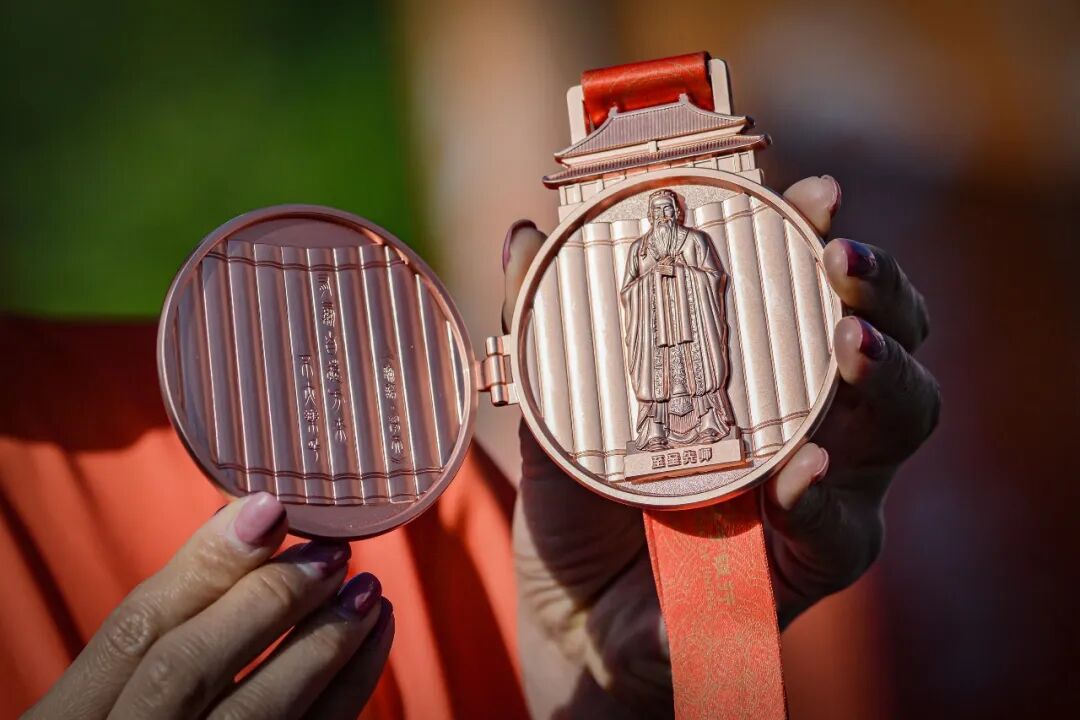 文化元素的深度融入,成为今年赛事最鲜明的辨识度。参赛服采用橙红渐变色,金色线条勾勒出孔庙大成殿与运河波纹,与儒家文化的庄重底色和运河文脉的灵动气韵相呼应;完赛奖牌为开合设计,“有朋自远方来,不亦乐乎”的字样尽显孔孟之乡的热情好客,外缘饰有流云水纹则呼应“上善若水”的哲思。马拉松博览会上,“济宁优品”展区、非遗手作等集中亮相,让赛事与城市产业实现双向赋能。“济马老友”专属激励计划,为2673名连续两年参赛的跑者送上专属礼品,让赛事更有黏性。线上同跑活动同步开启,不能到场的跑友也可通过App完成里程、获取同款奖牌,济宁马拉松的参与边界由此无限延展。济宁市体育局党组成员、副局长孙延斌表示,下一步将持续升级赛事品牌,打造全国独有的文化马拉松IP,以体育活力激活城市发展新动能,推动济宁体育事业和文旅产业同步提质增效。